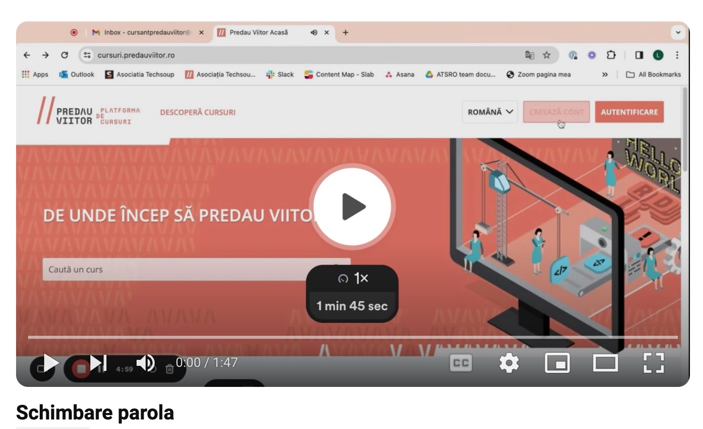 *Dacă ai uitat parola, o poți recupera, apăsând imediat sub câmpul parolă, pe Aveți nevoie de ajutor pentru autentificare? Mi-am uitat parola. Urmează apoi instrucțiunile primite pe email.